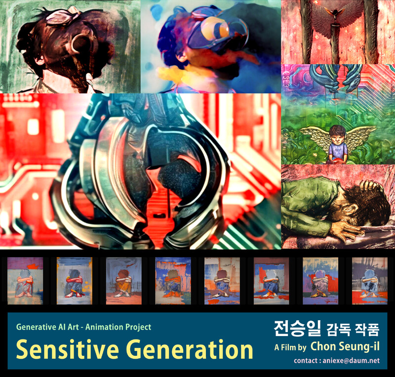 This short animation is an experimental work that recreates my existing drawings, digital painting, and 2D animation, which were produced under the theme of environmental problems and social trauma using image generative AI technology. is an aesthetic and methodological experiment on the subjective, emotional, human, and exclusive use of AI technology for image and video generation.